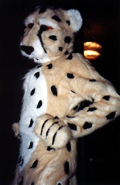 I wake up early and quietly watch a few cartoons while Smash & Dragon sleep on. A breakfast of chocolate covered expresso beans and Sunny D gets the old brain to working. At 11 I have to choose between the Wolf SIG and a fursuit SIG - I head to the fursuit lounge. After an interesting discussion of building fursuits for hire - and construction techniques - it's off to the dealer's room, the only time I saw it while not in costume.