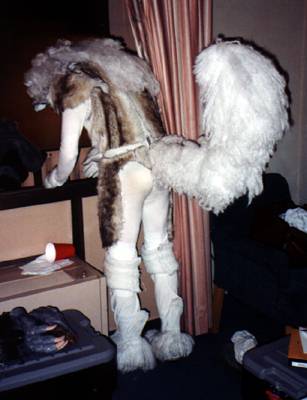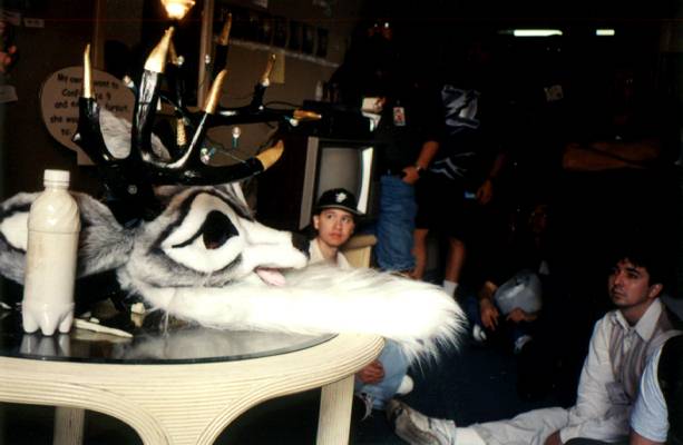 Went to the fursuit lounge for the clothing & props SIG and the carving a head SIG. Teddy Ruxpin's info was interesting. Lance Ikegawa's tips on foam, adheasives, and construction were some of the best information I got at CF9, as well as close-up looks at his Hyena (Chase), Steele, and Frost heads. Passed Silvermane's head around as well. The demo ran well over, and I barely had time to say 'Bye to Brokken before he left.