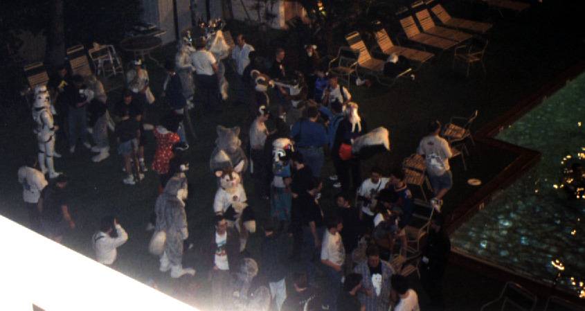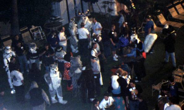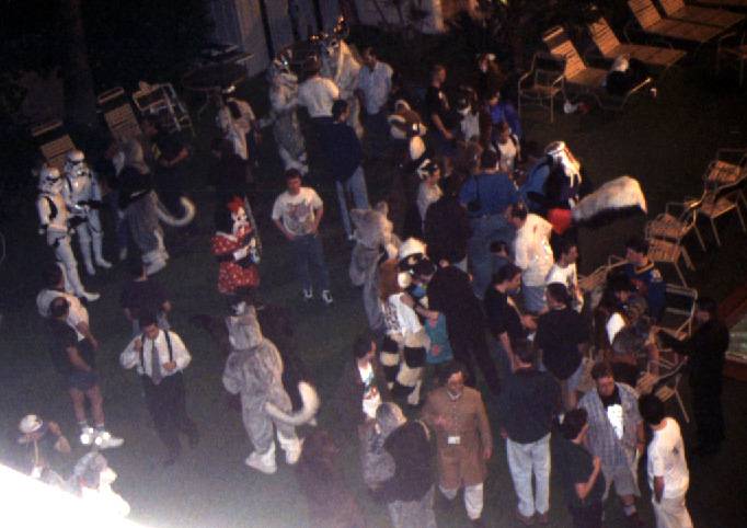It takes a while to get Lance into Mufasa -- well into the first half of the furdance -- so everybody except Brokken, Hunter and I takes off for the Furdance. We kill time in the hallway outside Lance's room while he gets ready. Finally he's ready for me to drop the servo pack in and we all head off to the poolside dance.