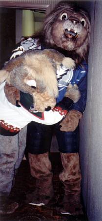 From left to right First - (???), Don Coyote (Farthing Fox), and Stanley D. Lion 2nd - Stanley D. Lion and Silvermane (Ysengrin)