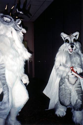 A quick trip to Arby's with Lance and Brokken for dinner. Brokken and I get into our 'zoots and go to the AHWW get-together (again) - but it's already moved elsewhere by the time we got to the Pearl possum. It's close to time for the Fur Dance, so we migrate back to the room to meet up with some of the other fursuiters.
