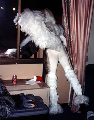 Went to the fursuit lounge for the clothing & props SIG and the carving a head SIG. Teddy Ruxpin's info was interesting. Lance Ikegawa's tips on foam, adheasives, and construction were some of the best information I got at CF9, as well as close-up looks at his Hyena (Chase), Steele, and Frost heads. Passed Silvermane's head around as well. The demo ran well over, and I barely had time to say 'Bye to Brokken before he left.