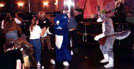 We got back just in time to see the start of a spontaneous Fur Dance at the hotel bar. I'm out of fursuit, but still have fun taking pictures of the dancers.