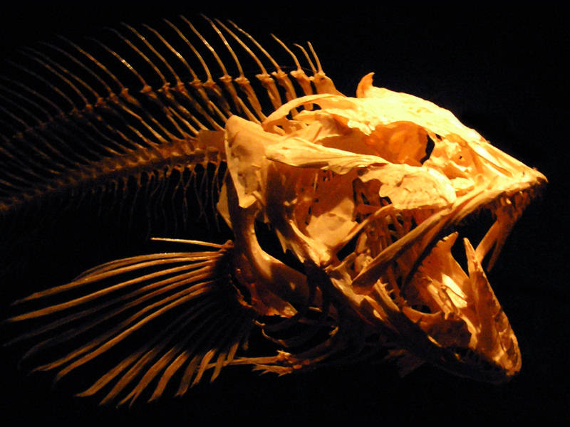 This large lingcod skeleton is on exhibit at the Monterey Bay Aquarium. The lingcod is native to the Pacific coast of North America.
