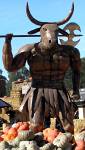 Well, actually we don't know the story behind this large metal figure, except the folks at Arata's Pumpkin Farm bring him out every year for the Halloween season.